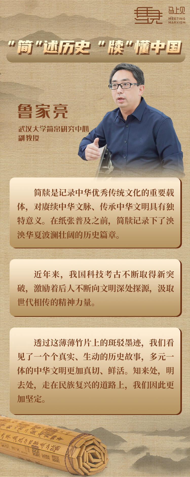 我国首次考古发现的秦简、中国最早的家书木牍、时间跨度最长的汉代《质日》、中华第一长文觚……一系列考古学之最闪耀在江汉平原一隅的古泽云梦。上个世纪70年代以来,湖北省孝感市云梦县先后出土了3500多枚战国秦汉简牍,作为重要历史进程的原始记录,填补了传世文献的诸多空白。荆楚网(湖北日报网)联合武汉大学马克思主义学院“马上见团队”,邀请到武汉大学简帛研究中心鲁家亮副教授,给我们讲讲云梦出土的秦汉简牍是如何记录下泱泱华夏波澜壮阔的历史篇章。