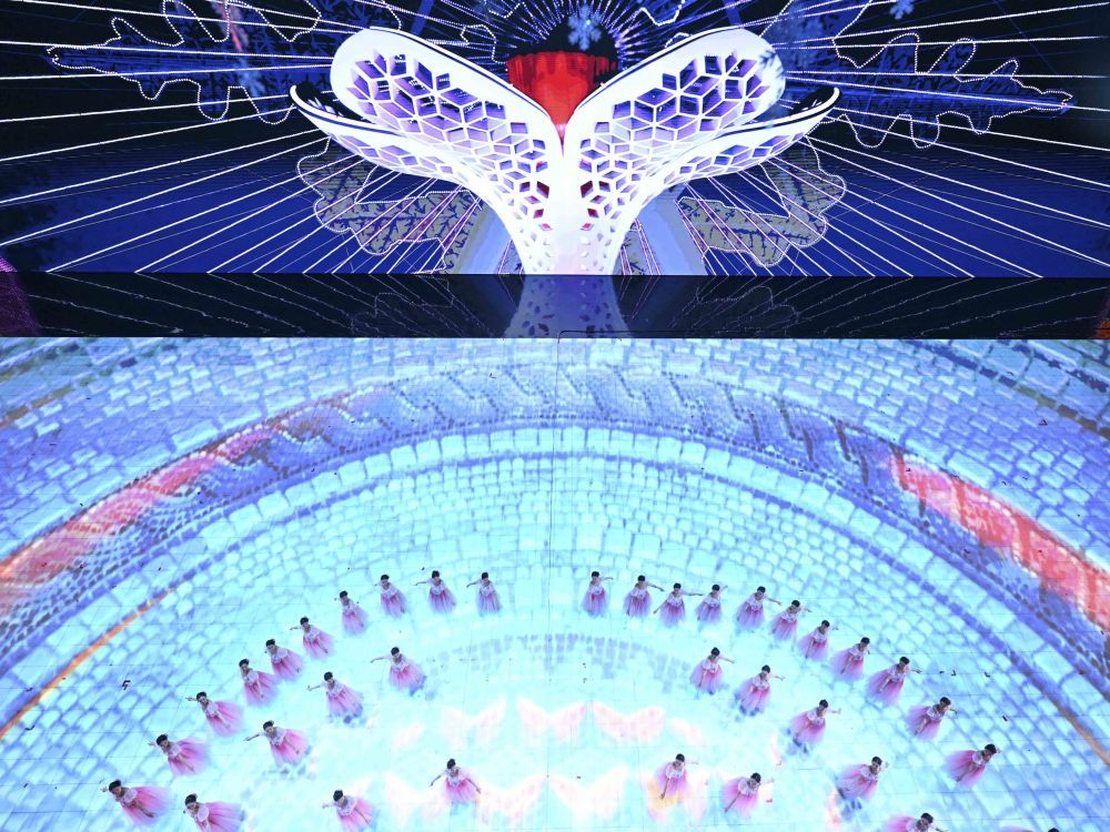 ↑闭幕式分会场上的主火炬熄灭。