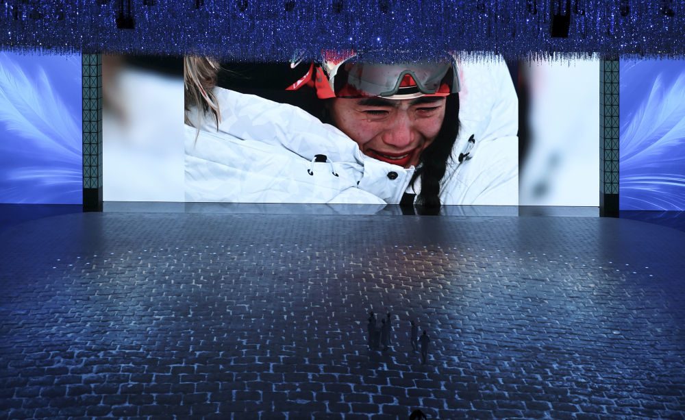 ↑闭幕式分会场拍摄的雪雕。
