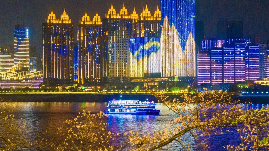 武汉的各大商圈商街也布置了多种实景樱花树,春日氛围拉满,汉服巡游、樱花音乐会、樱花市集等特色活动现场人气十足。夜晚,两江四岸亮化推出长江灯光秀樱花季特辑,以灯光创意展现武汉樱花的缤纷绚丽,营造出浓浓的浪漫春日氛围。