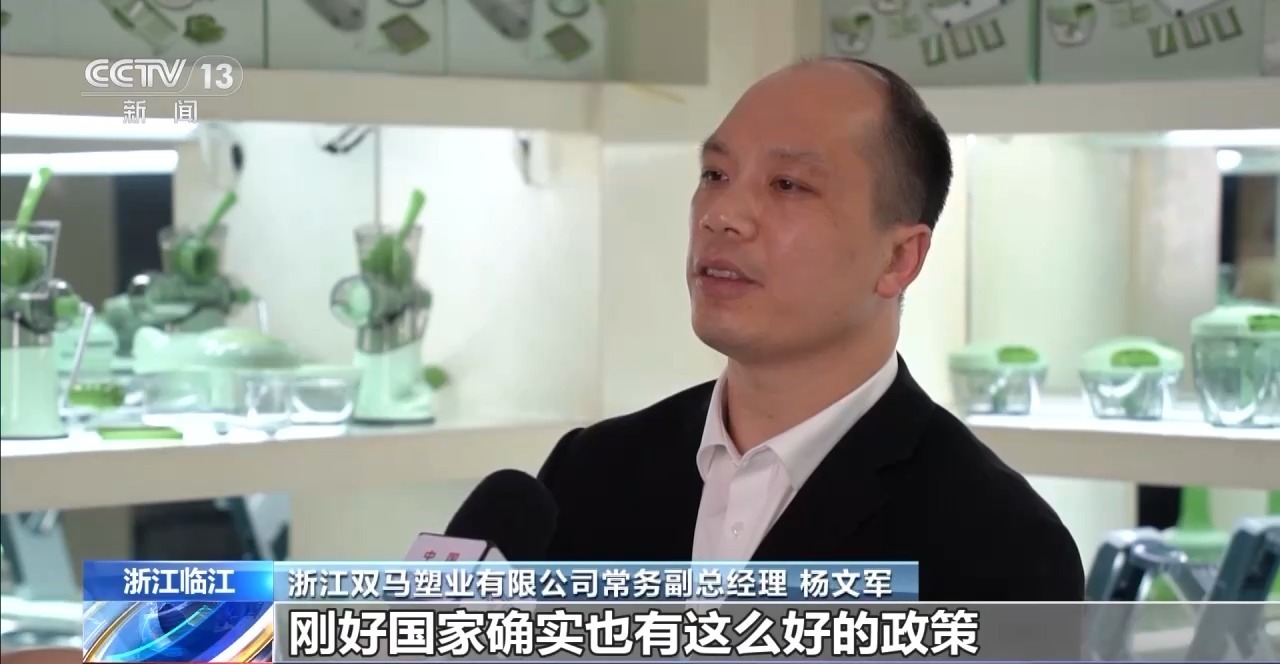 浙江双马塑业有限公司常务副总经理 杨文军:刚好国家确实也有这么好的政策。有专业的平台跟我们对接合作,我们也找到门路了。我们接下来加油干,更好地把我们产品推广给广大的消费者。