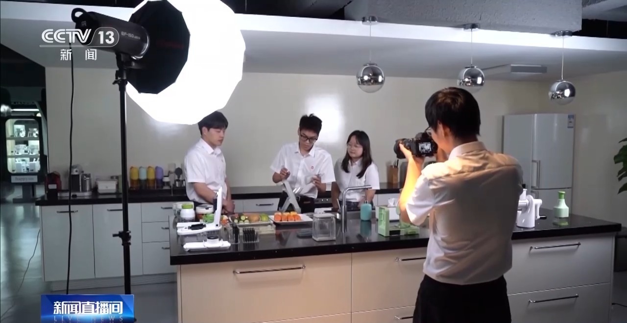 这是位于浙江台州临海市的一家企业,主要生产厨房家居类的塑料用品,这是他们在拍摄产品的介绍视频,为在电商平台上架做准备。据了解,这家企业已经深耕海外市场20多年,75%的产品销往欧美等国家。此次美国关税上涨,企业订单损失超过1.5亿元。