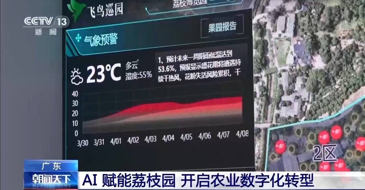 眼下,正是荔枝开花坐果的关键期,中山大学飞鸟团队接到了许多荔枝园的邀请。种植户们希望通过接入“AI管家”,能将荔枝的品质提升。