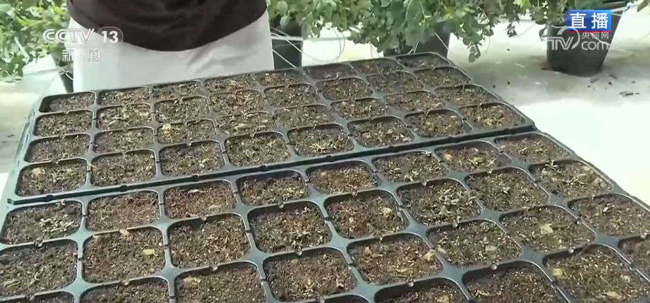 如果您觉得这样的现代化农业大棚只能种植蔬菜水果,那你就太小看它的作用。在当地科研人员的努力下,它还为沙漠治理做出了贡献。接下来,大家随着直播镜头看到非常罕见的胡杨树幼苗,在这些育苗池里,那些点点绿色小芽就是珍贵的胡杨树宝宝。