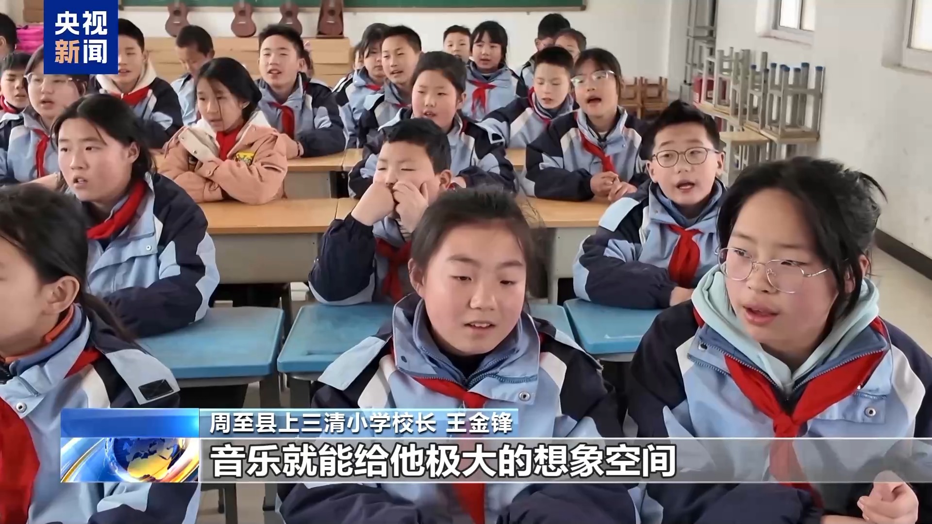 周至县上三清小学校长 王金锋:农村学校大多是留守儿童,爸爸妈妈都在外面打工,爷爷奶奶在家里看护这些孩子,隔代教育。音乐就能给他极大的想象空间还有发展空间。孩子们首先对自我有一个认知、提升,他觉得自己可以很自然地站到大家面前去展示自己的才艺。