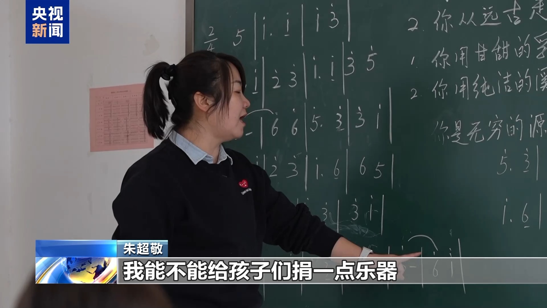 朱超敬:调完琴之后,他正在教室上课,我一下就萌发了那种小时候上课的状态,孩子们特别可爱。他正在上课,我就跟梁老师说,我能不能给大家教个歌,或者上一节课。