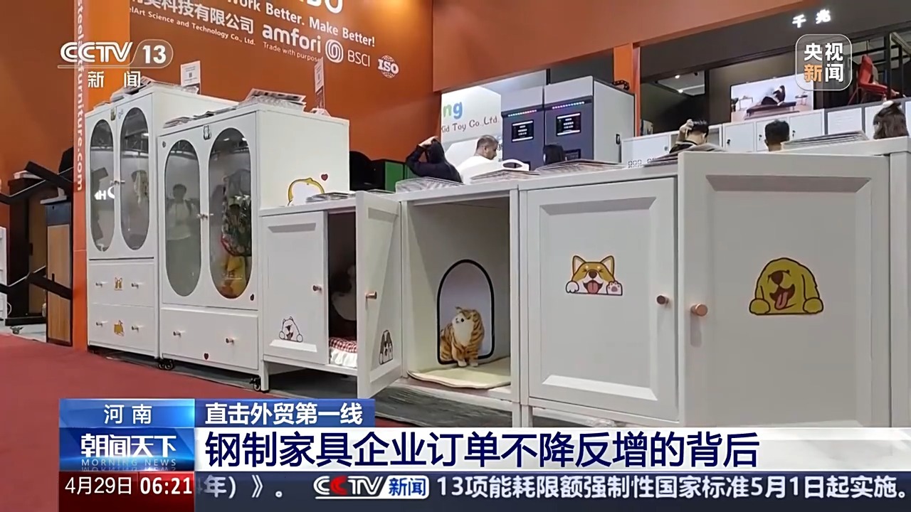 洛阳科飞亚家具有限公司负责人 魏鹏飞:我们对其他国家的市场开拓是非常有信心的,完全可以平替掉目前我们30%美国这个份额,我们也是对这个行业的发展未来是非常有信心的。