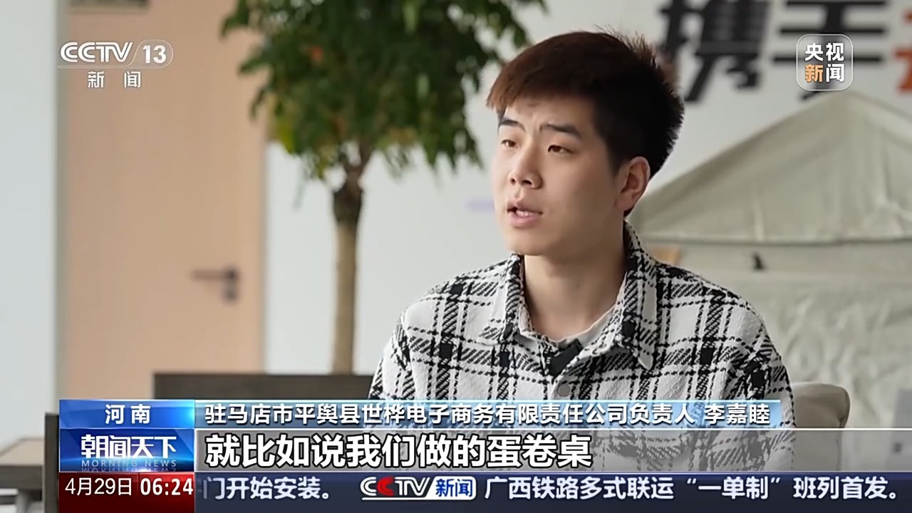 驻马店市平舆县世桦电子商务有限责任公司负责人 李嘉睦:就比如说我们做的蛋卷桌,我们把它设计为能无线充电的一个装置,小推车的话增加了一个助力系统。