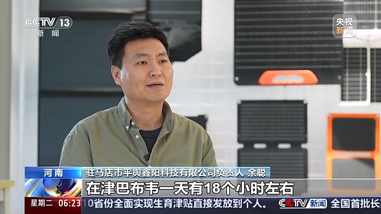 驻马店市平舆鑫阳科技有限公司负责人 余聪:我们做市场调研了解到的情况是,在津巴布韦一天有18个小时左右是没有电力供应的,这几乎成了他们当地的一个必需品。