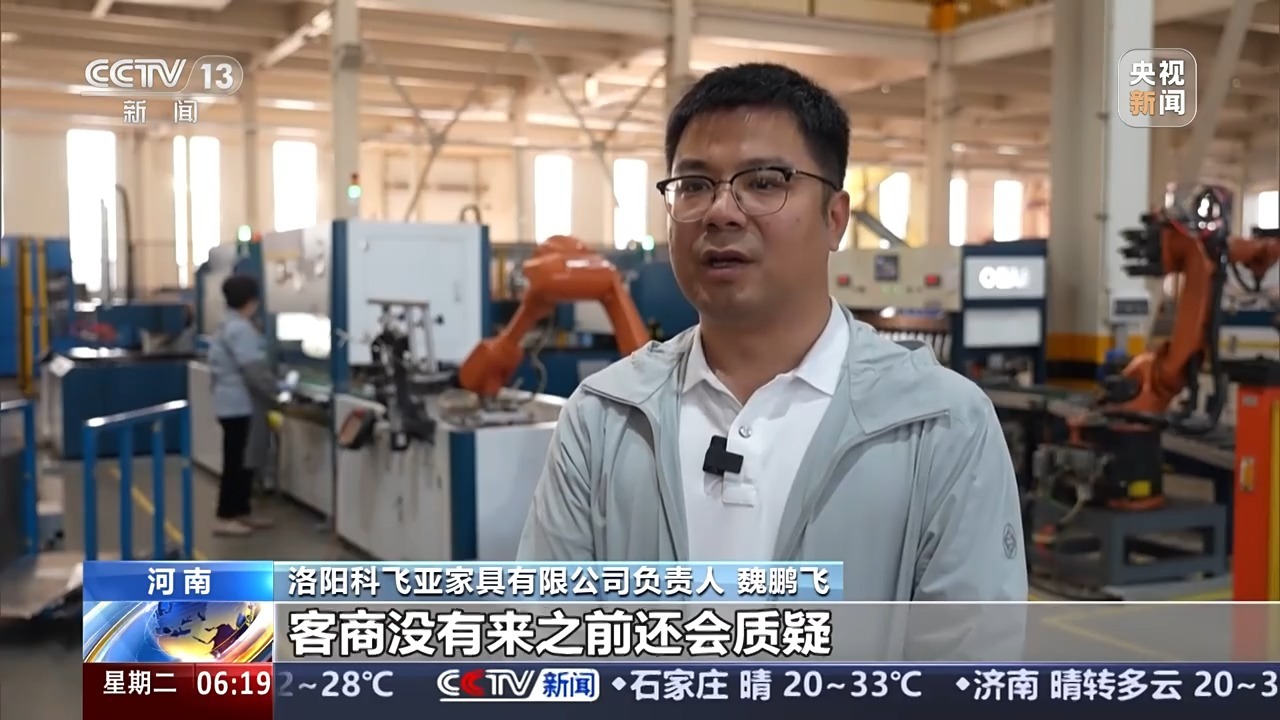 洛阳科飞亚家具有限公司负责人 魏鹏飞:客商没有来之前还会质疑,这样的品质怎么能有这么实惠的价格。看到我们的智能化工厂、产业链配套能力、物流成本等等就非常信服了。