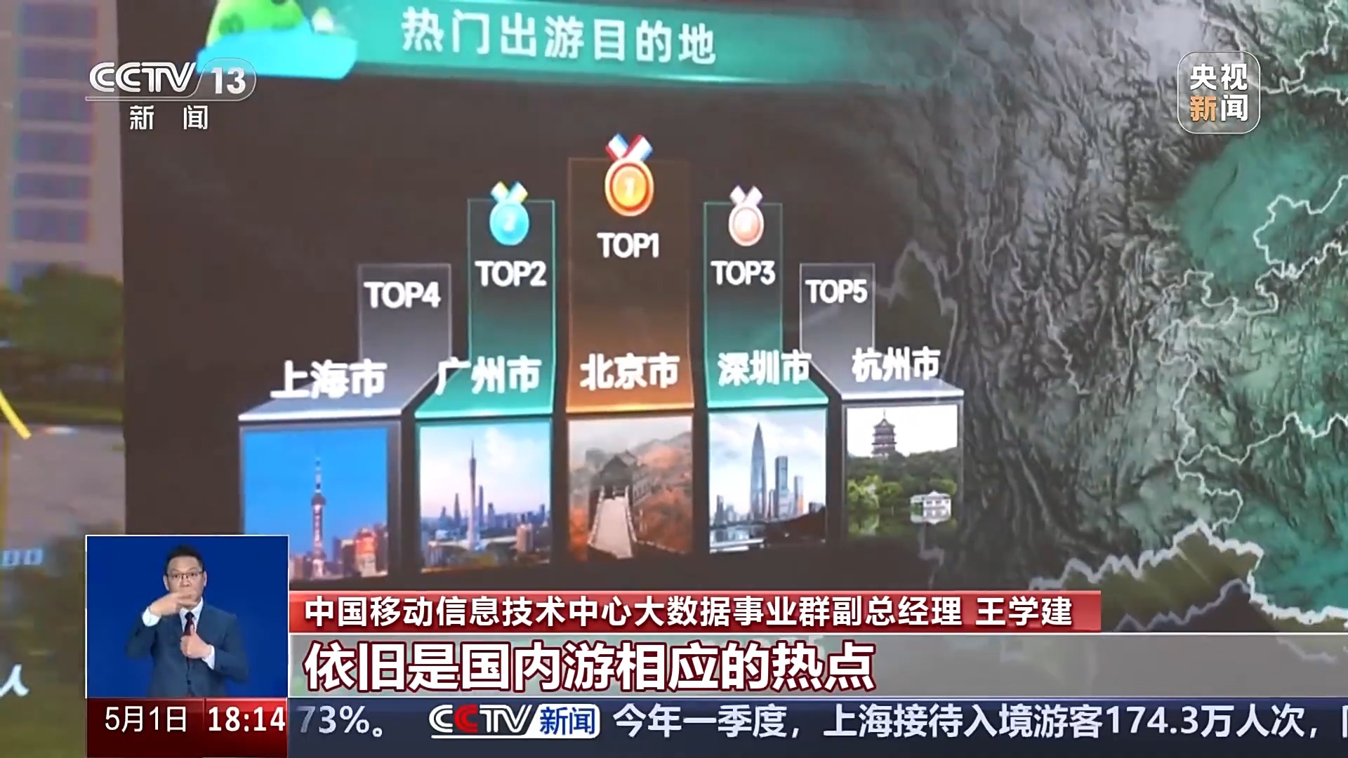 中国移动信息技术中心大数据事业群副总经理 王学建:今年“五一”黄金周,在国内游这方面,我们也发现一、二线城市依旧是国内游相应的热点,吸引了来自整个出游人群的59%。乡村游的热度也是越来越高,预计今年的乡村游整个人流较去年同期会增长12%。