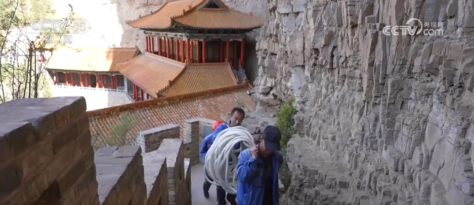 清晨,绵山风景区安全维护员温海龙开始进行高危岩体排险作业,在距离地面60余米的垂直崖壁上,随时有强风袭扰和碎石坠落的风险。所以,每次作业前他都严格按照安全规程检查装备。