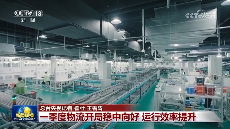 央视网消息(新闻联播):中国物流与采购联合会公布的数据显示,今年一季度,全国社会物流总额即物流运行中的实物商品价值总和为91万亿元,同比增长5.7%。物流需求结构持续优化,大规模设备更新、消费品以旧换新政策推动相关物流需求持续向好。一季度,工业品物流领域的通用设备、专用设备制造相关物流需求同比分别增长9.4%、4.1%;商贸物流领域的通讯器材类、家用电器、家具类商品零售相关物流需求增长均在20%左右。