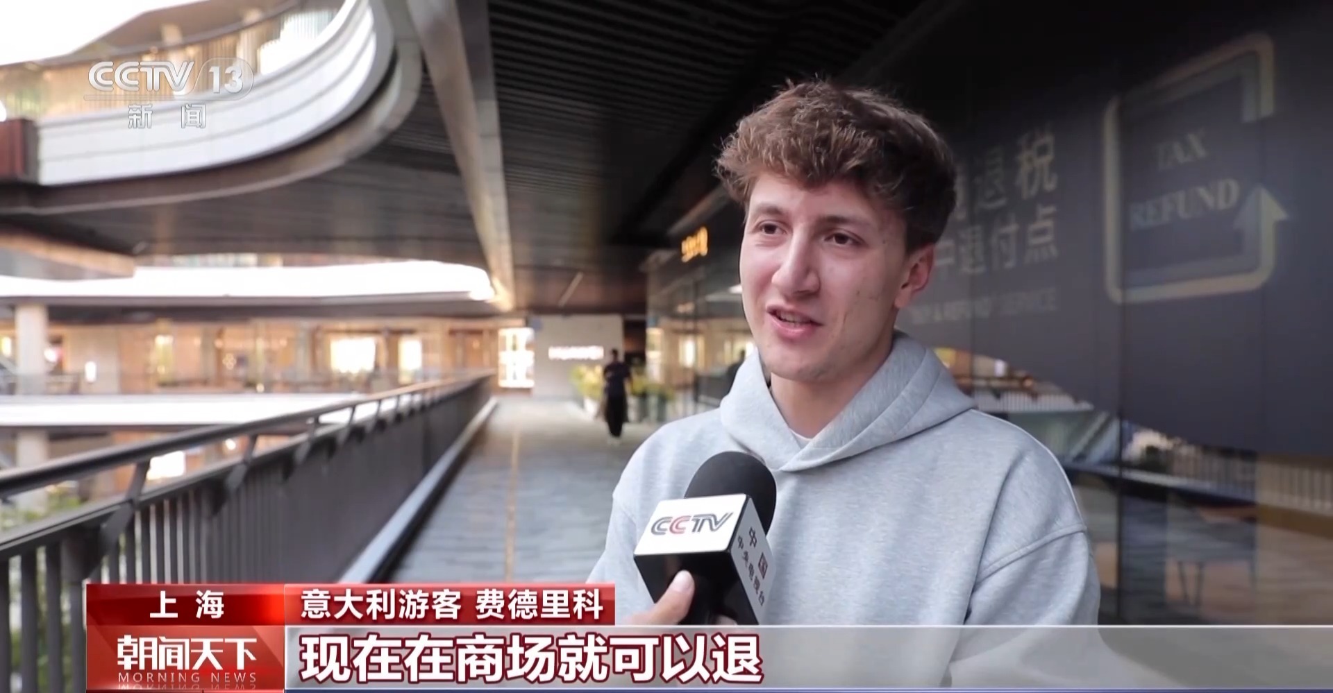意大利游客 费德里科:现在在商场就可以退,我认为这真的很方便。