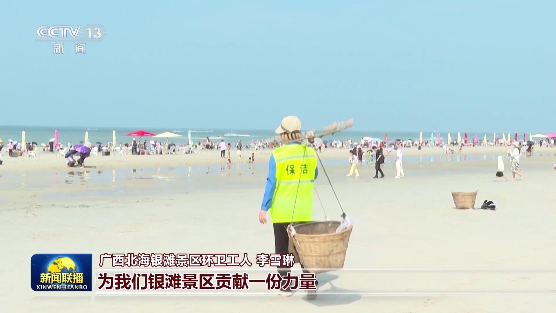 在广西北海银滩景区,绵延约24公里的沙滩上,从早上6时到晚上10时,有220位环卫工人坚守岗位、轮流守护,沙滩上的垃圾大多数需要人工清理。