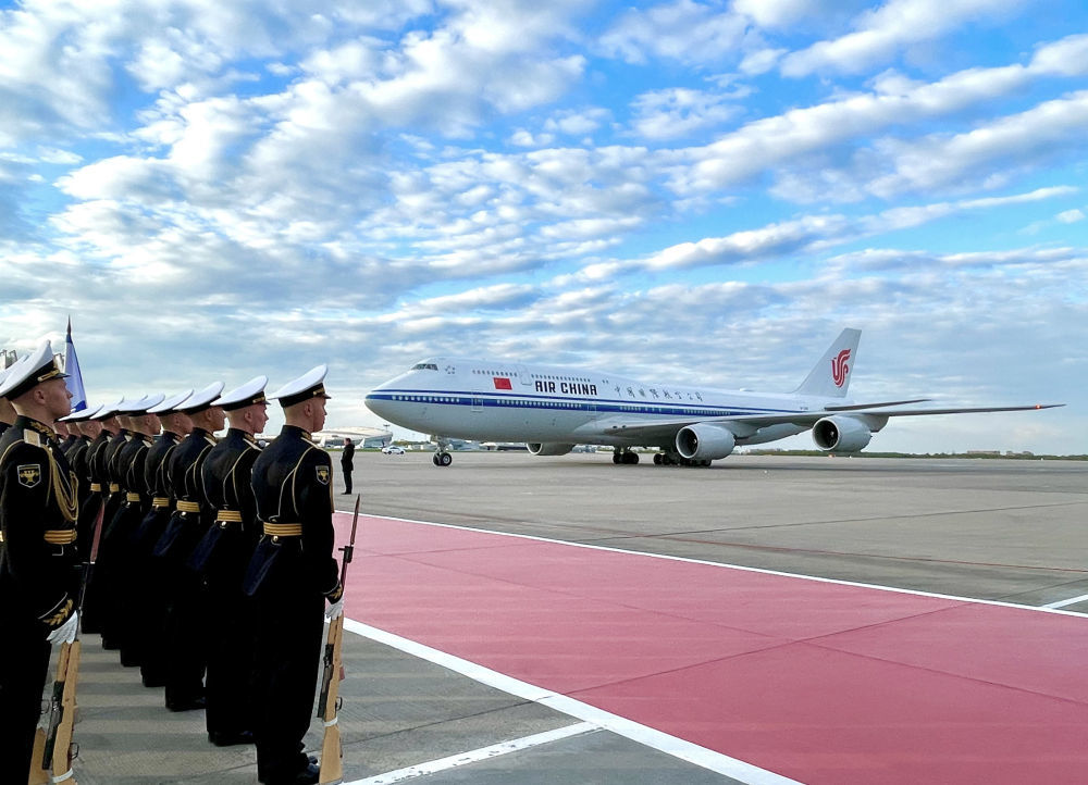 当地时间5月7日晚,国家主席习近平乘专机抵达莫斯科,应俄罗斯总统普京邀请,对俄罗斯进行国事访问并出席纪念苏联伟大卫国战争胜利80周年庆典。