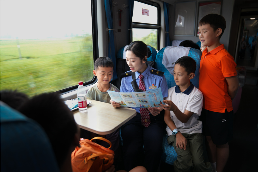 在漫漫旅途中,乘务员小姐姐化身“书香使者”,让旅客的乘车时光充满温暖。