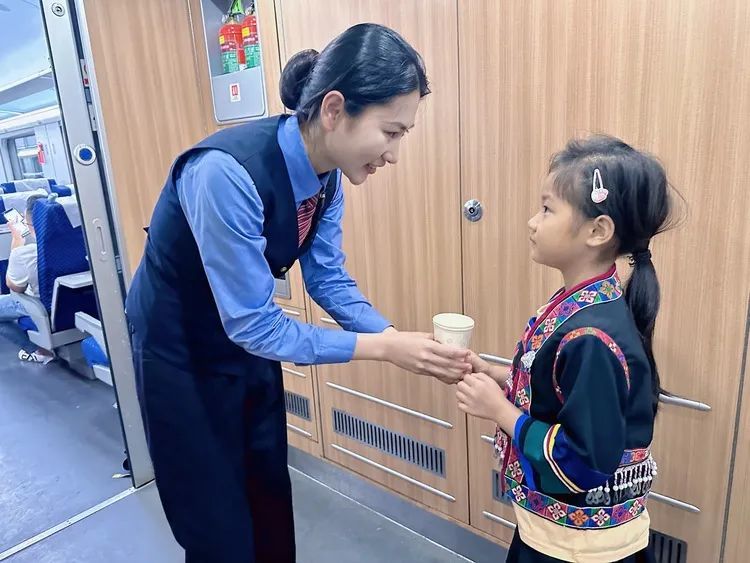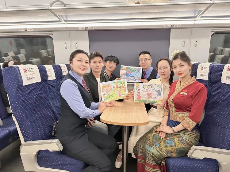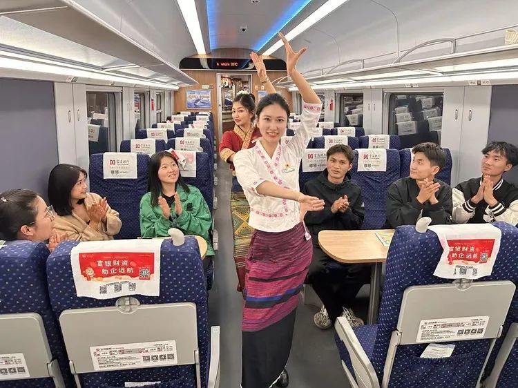 泼水节是云南傣族的传统节日之一。在昆明站至红河站的C566/567次列车上,列车员用舞蹈表演和画报向旅客展示云南民族文化,提升民族特色列车的文化魅力,让旅客出行更美好。