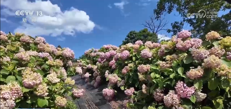 走进贵州惠水县绣球花种植基地,高低错落的花枝上,形态各异的花苞在微风中摇曳。游客们漫步其间,感受花海美景。