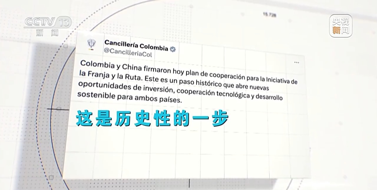 本周三,随着相关合作规划的签署,哥伦比亚正式加入“一带一路”倡议,两国下一步,将在经贸投资、可持续发展、数字经济等领域,展开合作。哥伦比亚外交部在社交媒体上发文称,这是历史性的一步。