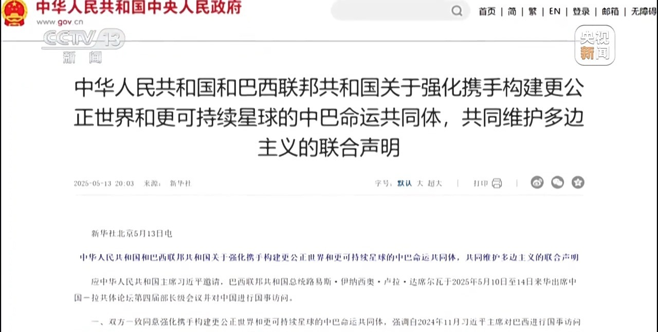 孙岩峰介绍,反对单边主义、反对霸权主义、反对贸易保护主义,我们有强烈共识,所以中巴之间在这个问题上的联合发声,会使多边主义能够得到更多国家的这种认同。而在乌克兰危机中国也认为是通过和平谈判去解决争端的唯一途径,巴西也是这样认为。所以中巴之间,在全球治理,在这种国际热点问题上的一种态度相当一致。