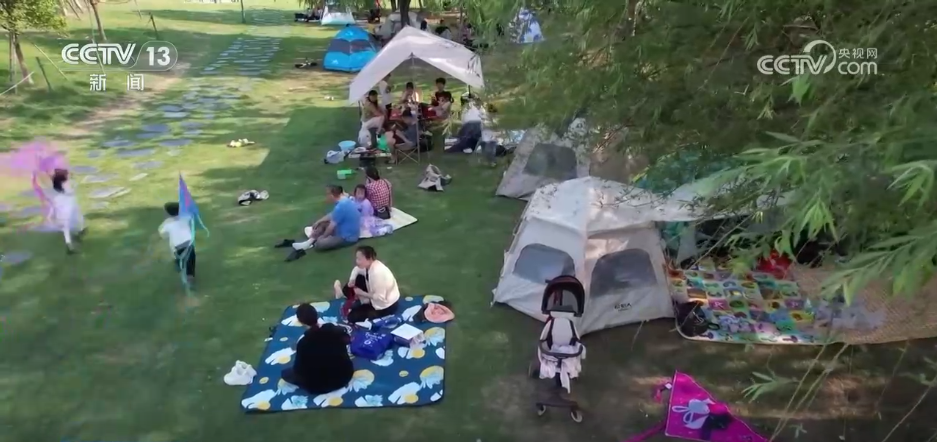 在江西南昌的赣江市民公园,每逢周末,这里便热闹非凡。露营区里,不少市民在这里搭起了天幕、帐篷,摆开野餐垫,缤纷错落的帐篷点缀绿地。大家在长达28公里的滨江景观连廊中、超9.5万平方米的绿地上,亲近自然,放松身心,享受惬意的休闲时光。