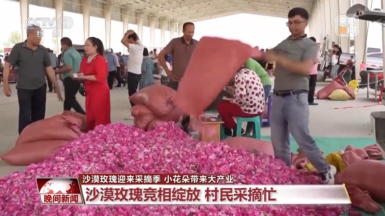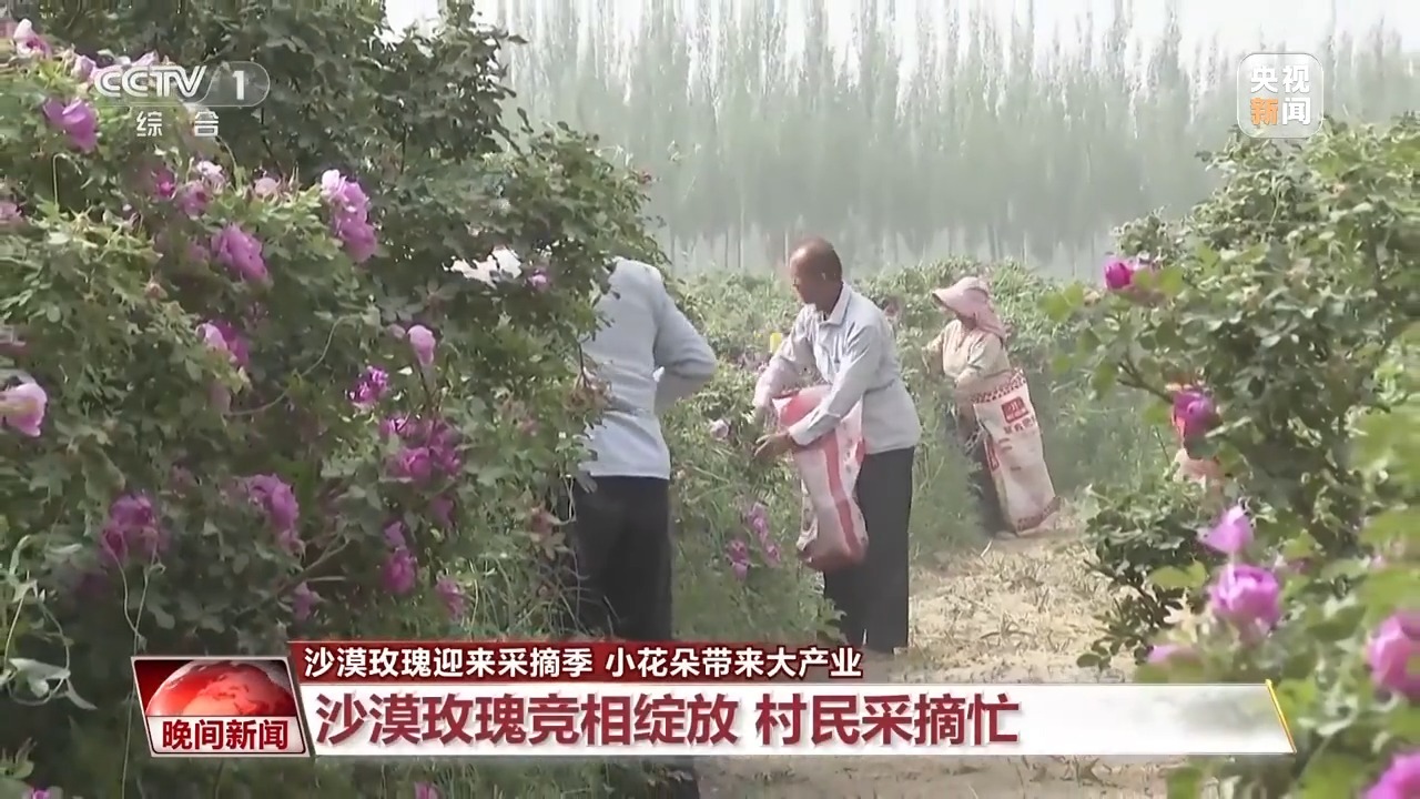 在这里,玫瑰不仅是防风固沙的“生态卫士”,也是助农增收的“致富花”。眼下,7万余亩玫瑰花迎来采摘季。