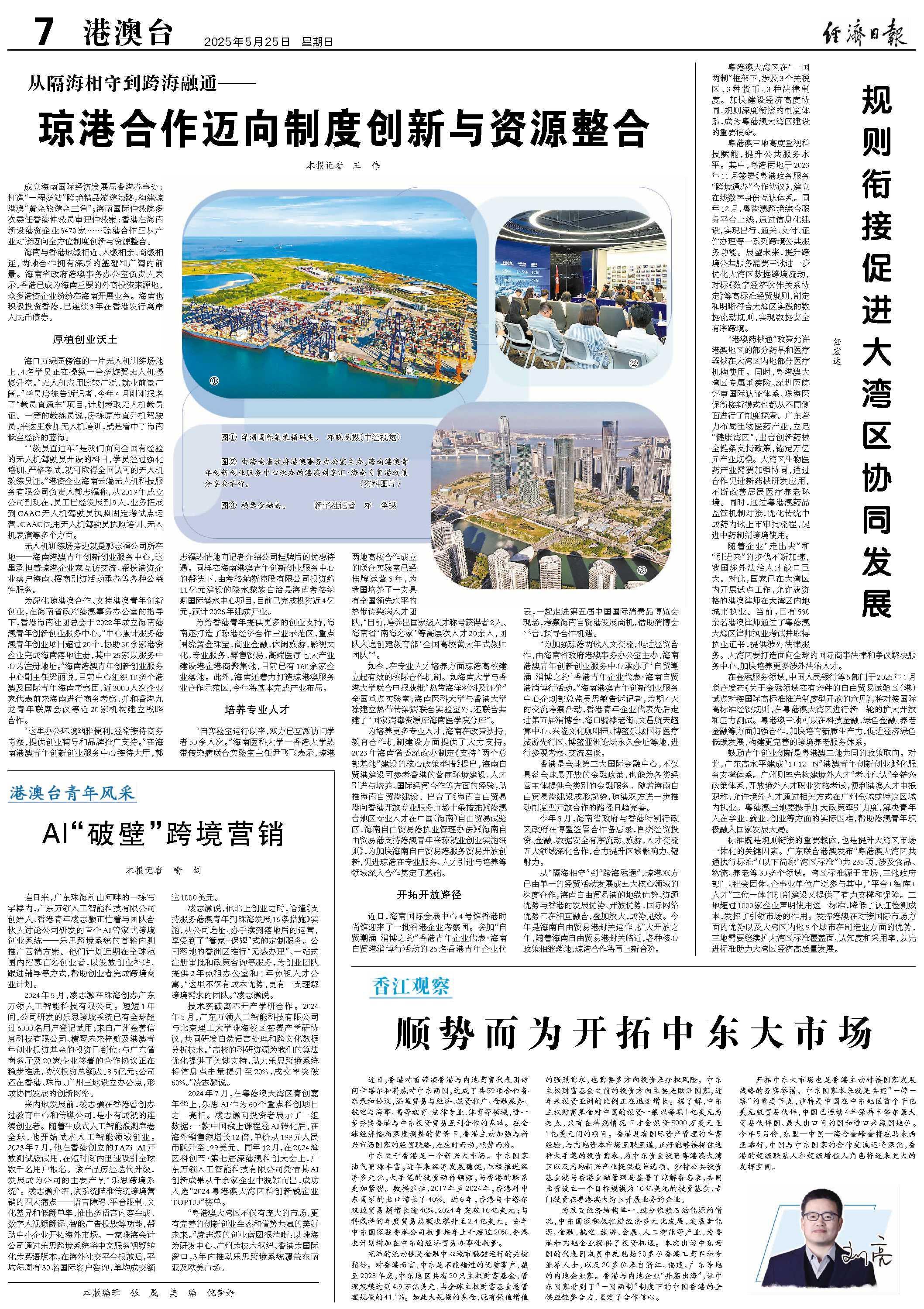 粤港澳大湾区在“一国两制”框架下,涉及3个关税区、3种货币、3种法律制度。加快建设经济高度协同、规则深度衔接的制度体系,成为粤港澳大湾区建设的重要使命。