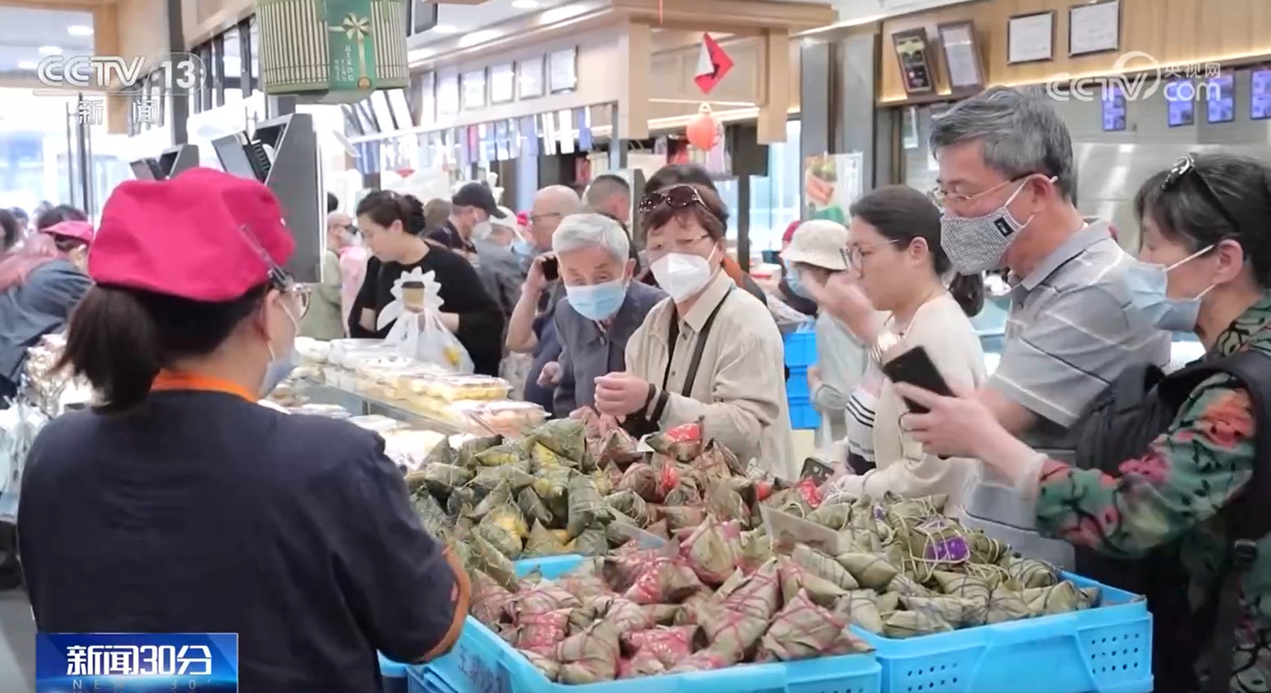在浙江宁波,肉禽蛋批发市场内人声鼎沸,不仅粽子的销量节节攀升,粽子的制作原料也迎来销售高峰。
