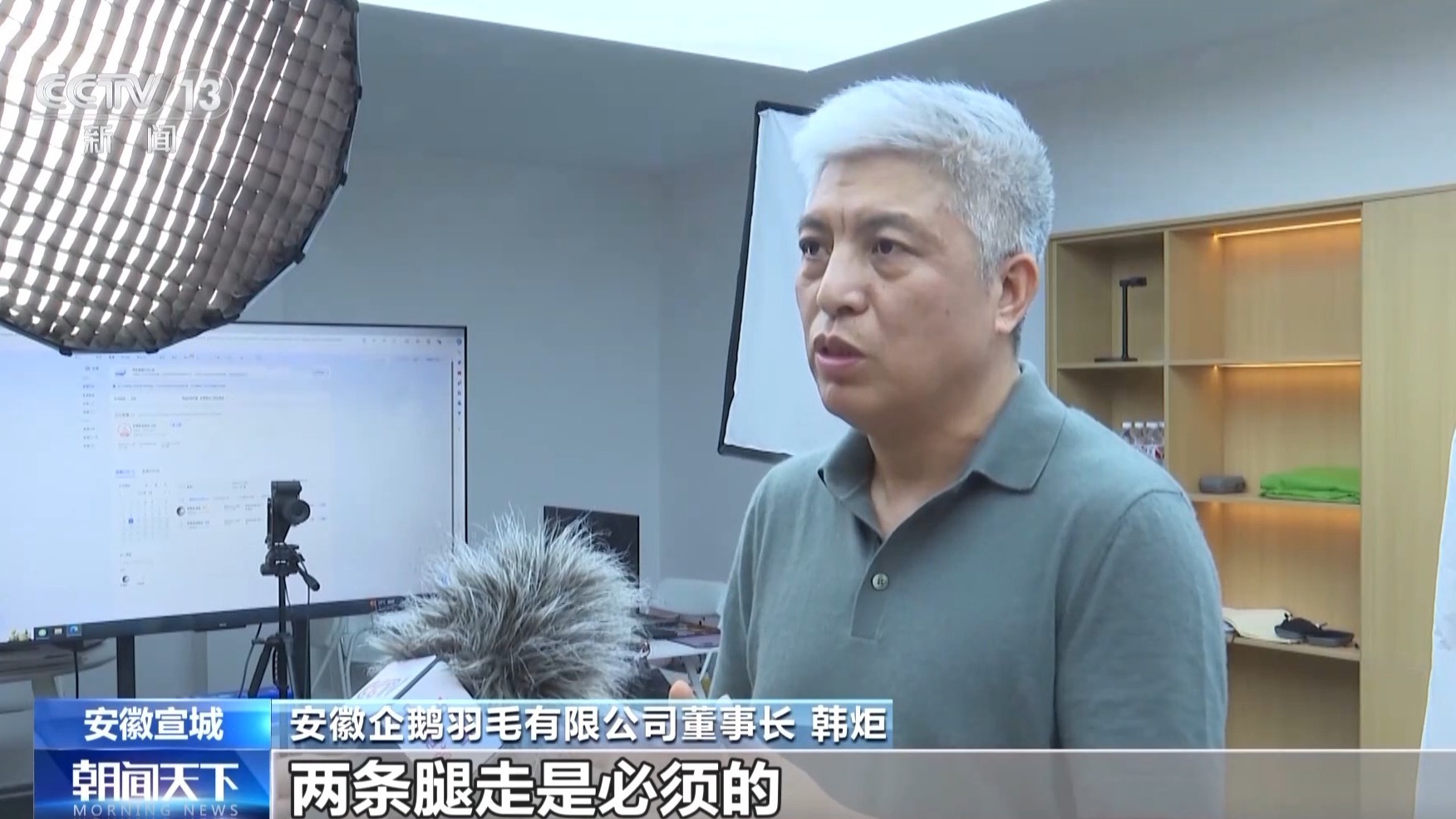 安徽企鹅羽毛有限公司董事长 韩炬:我们始终讲,鸡蛋不能放在一个篮子里,两条腿走是必须的。因为国内的经济也在不断发展,家庭的消费能力都在上升。