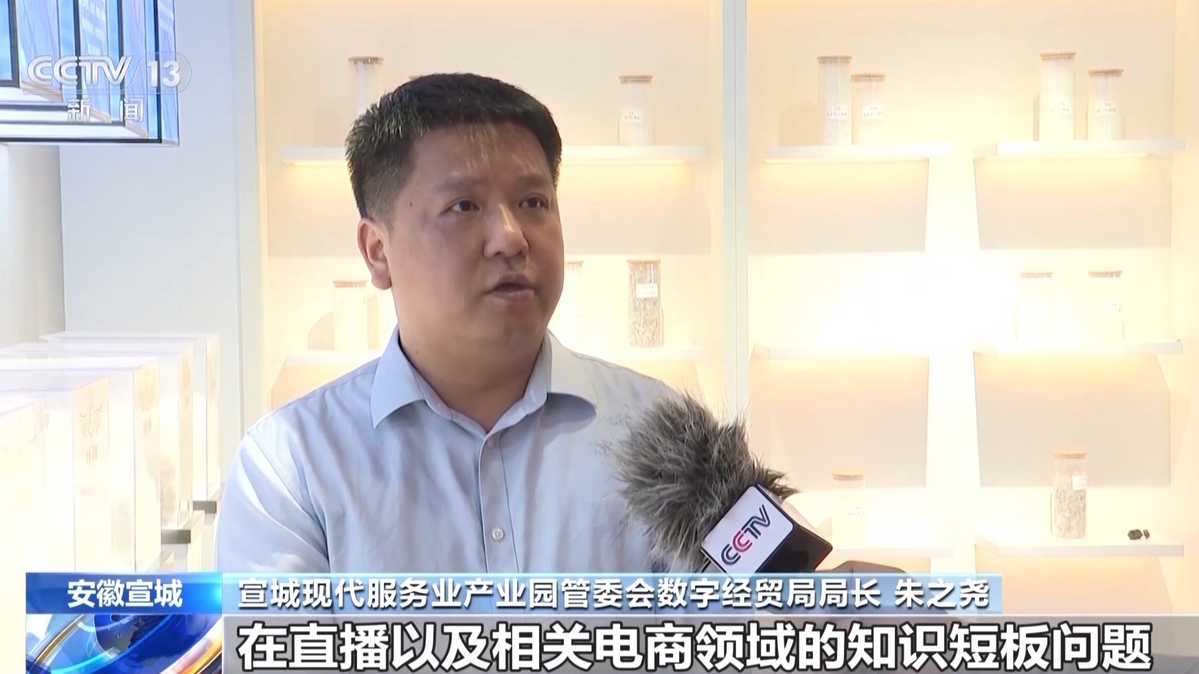 宣城现代服务业产业园管委会数字经贸局局长 朱之尧:针对企业提出来的在直播以及相关电商领域的知识短板问题,我们加大了与抖音等电商平台的合作,帮助企业去寻找合适的推广产品。
