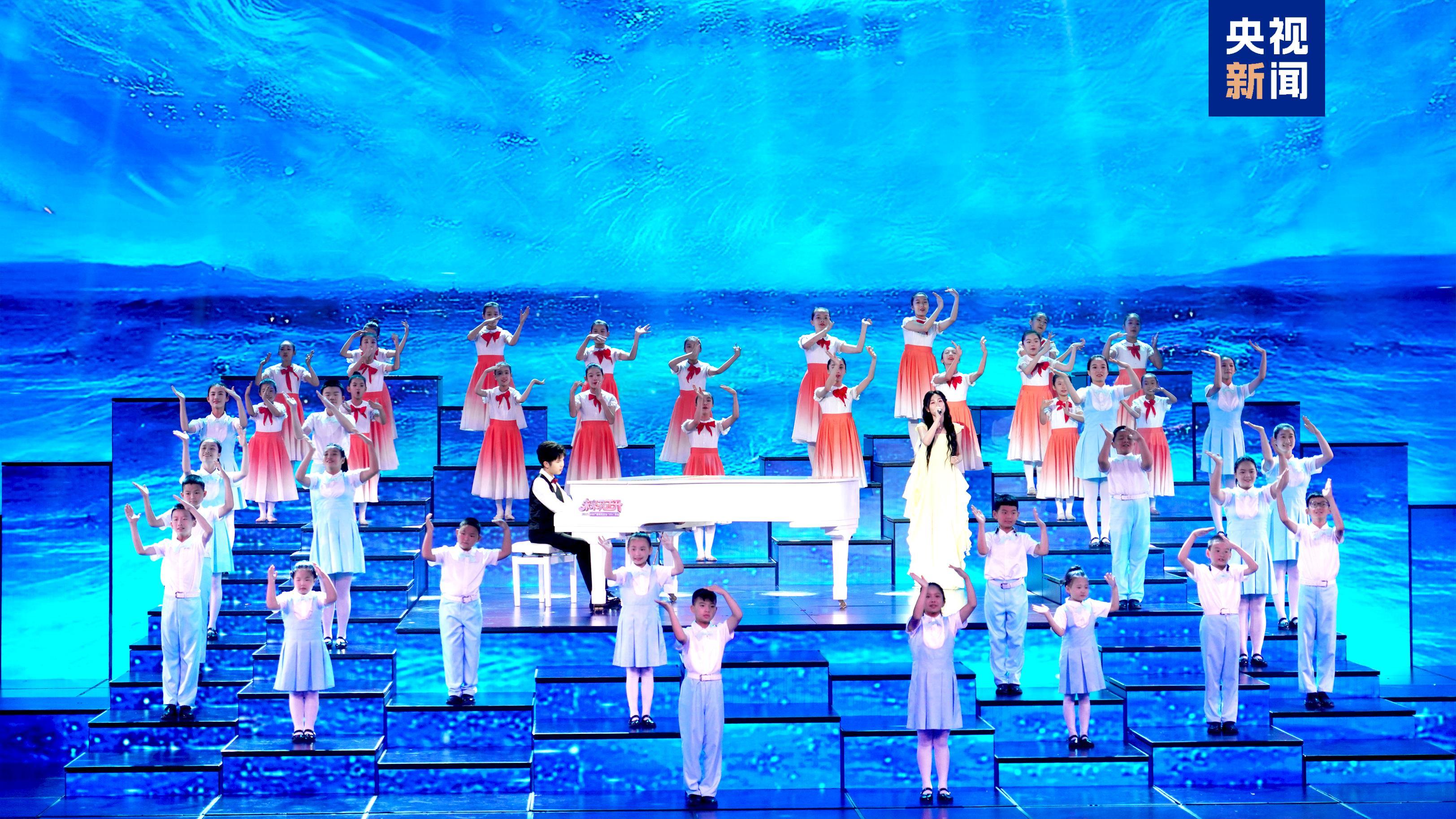 晚会同名主题曲《未来花正开》由来自北京、江苏、陕西、青海、河南、广东等省市及澳门特别行政区的多位少年儿童共同作词、AI作曲,呈现百花竞放的欢腾景象。《秒回童年》通过人工智能技术,请91岁表演艺术家陶玉玲、张勇手与童年时期的自己惊喜“同框”,展现时光流转中不变的艺术初心与传承力量。《抱抱地球》中立方体升降屏上生动呈现出一只“会唱歌的裸眼3D大熊猫”,它与小朋友共唱自然之歌,传递对地球的关爱。