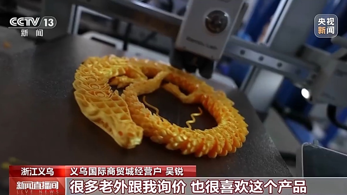 这段时间,在义乌国际商贸城做3D打印玩具生意的吴锐忙得不可开交,因为半个月前,店里上架了一批3D打印的端午系列摆件,美国、英国、马来西亚等国的外贸订单纷至沓来。