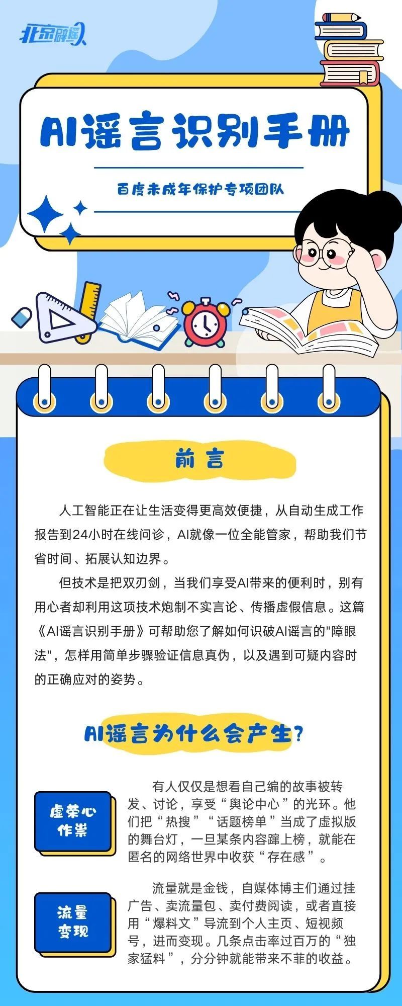 @青少年,请查收这份《AI谣言识别手册》,掌握遇到可疑内容时的正确应对姿势。
