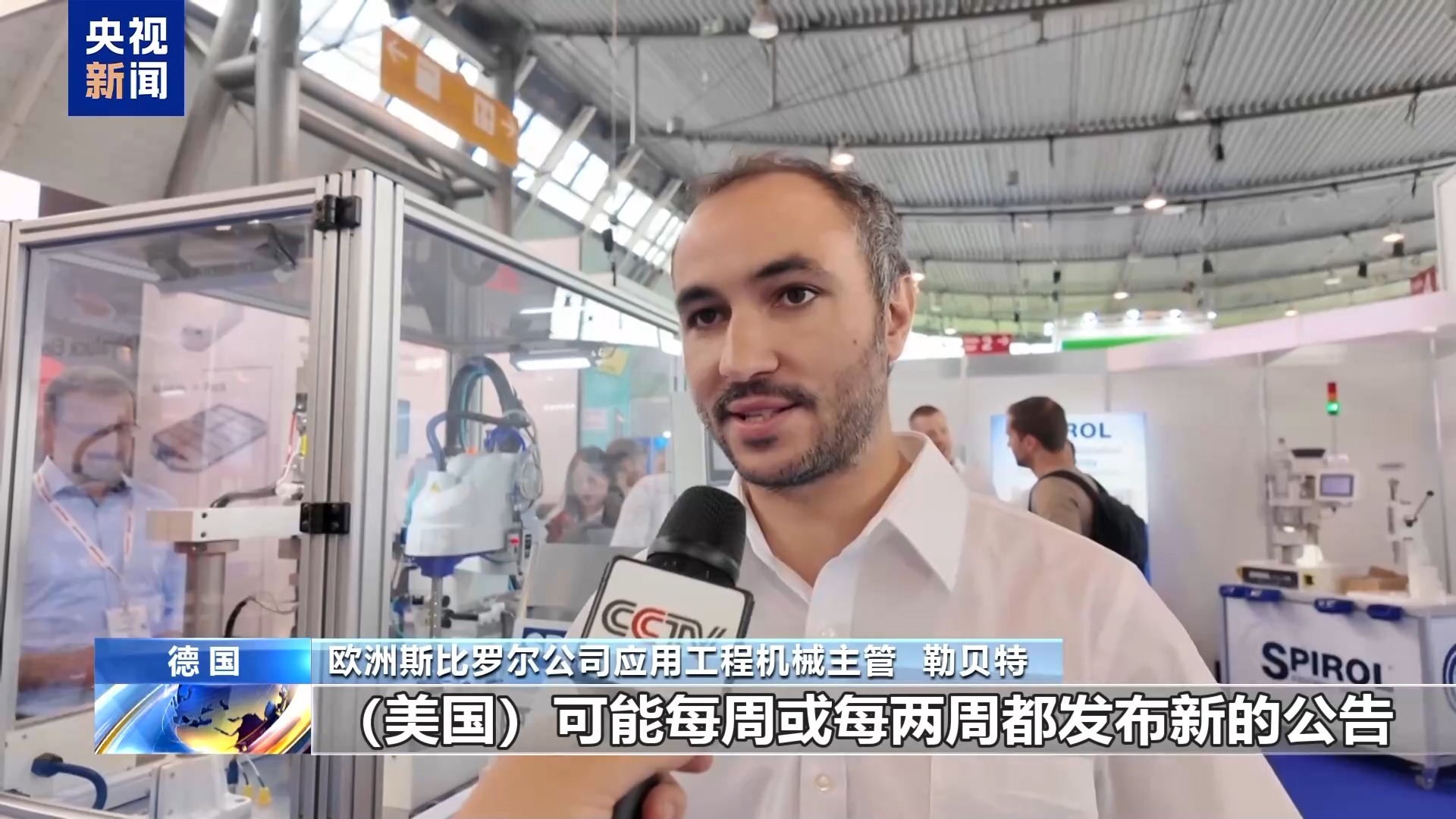 当地时间6月3日,欧洲电池展在德国斯图加特举行,全球共有1100多家企业参展。在本届欧洲电池展上,很多企业在接受总台记者采访时表示,美国关税政策的反复无常已成为企业开展跨国贸易时巨大的挑战,随时变动的关税政策使得企业与美国的很多相关贸易合作项目被暂停或推迟。