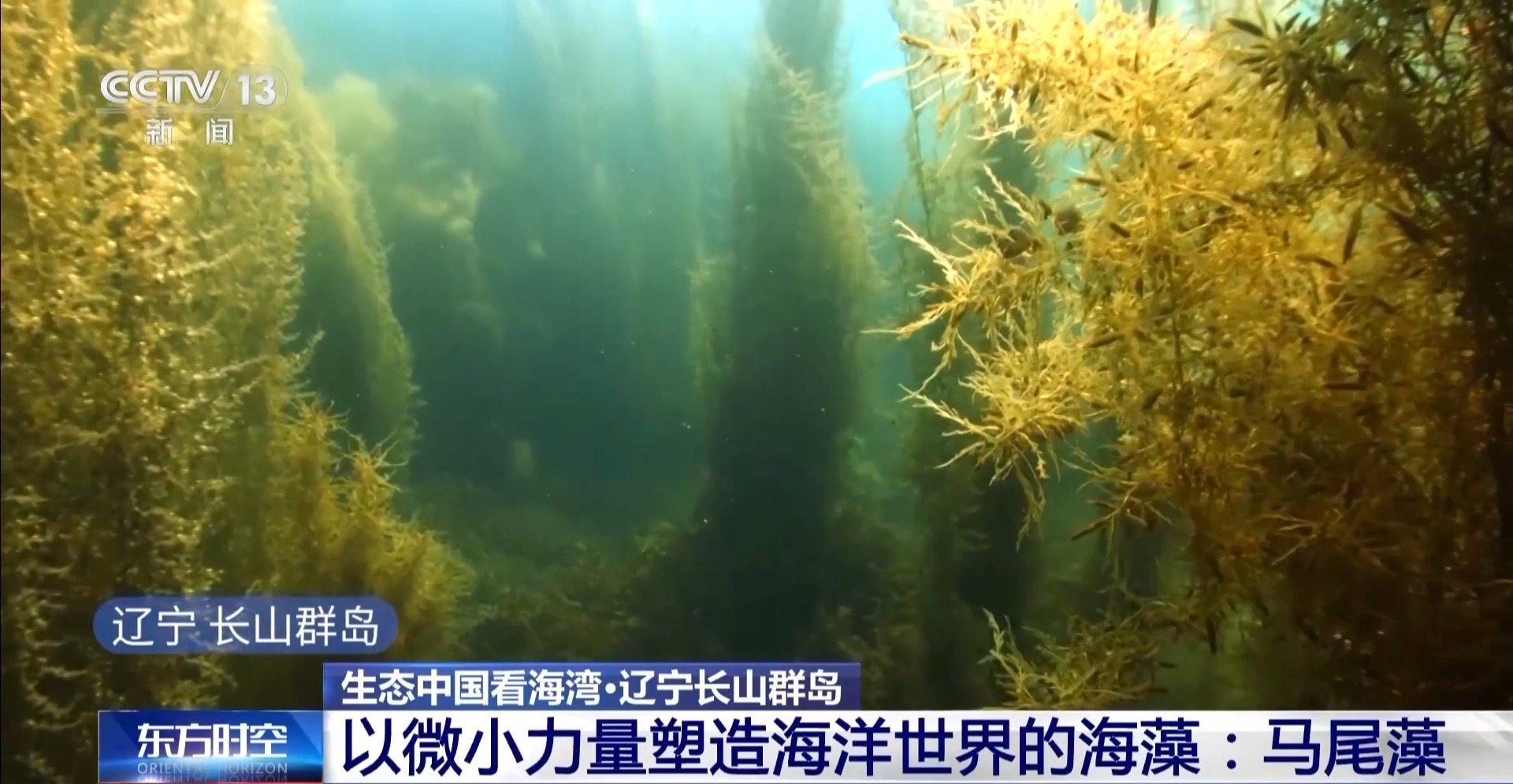 在辽宁长山群岛有一种叫马尾藻的海洋藻类,它们一束束地缠绕在一起,最长的可达十几米。我国是马尾藻主要产地之一,藻类群落不仅是众多海洋生物的栖息地,还在全球碳循环、海洋生态平衡中扮演着重要角色。在海水中,它的颜色是深黄绿色。