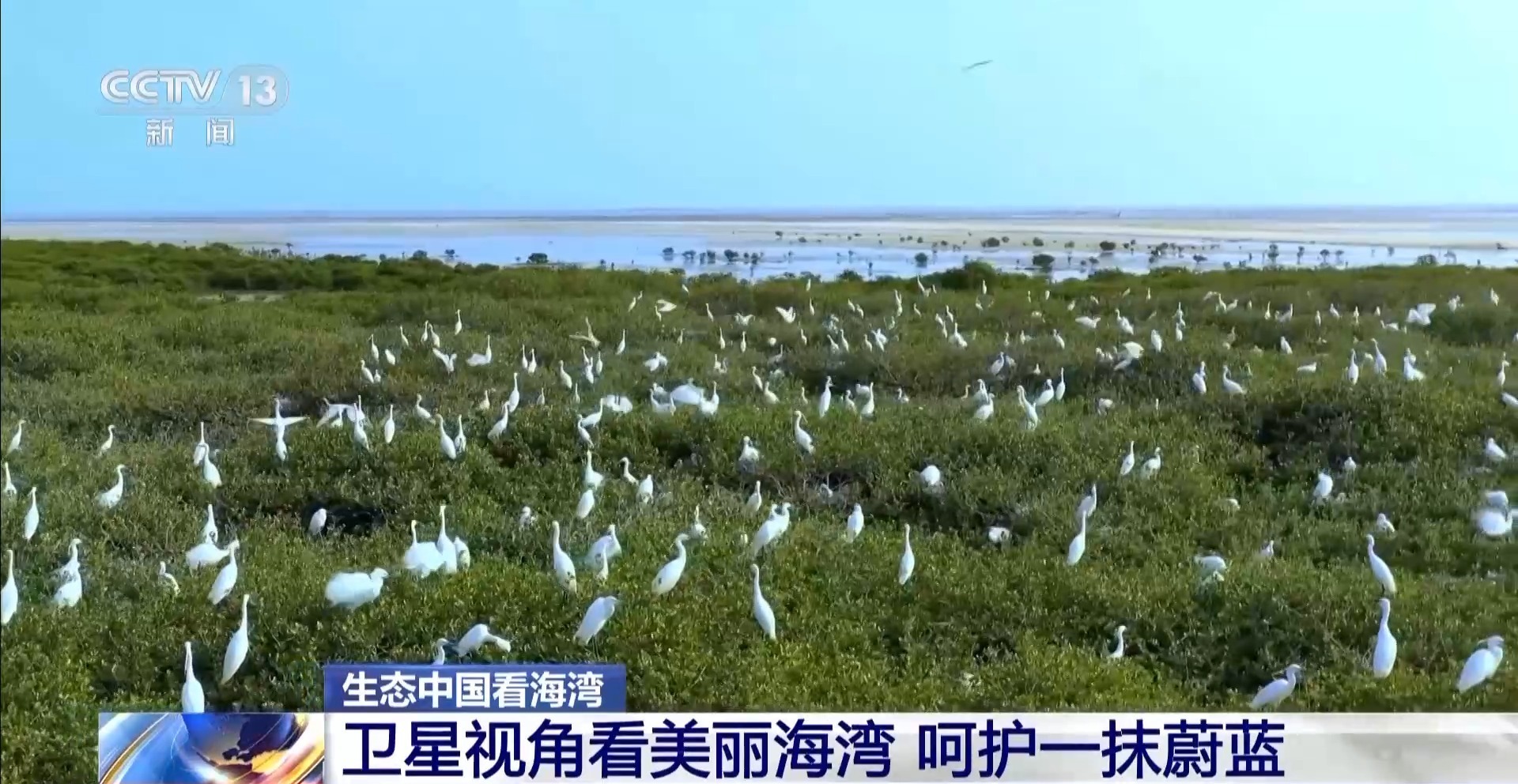 通过遥感影像对比,在全球最重要的滨海湿地之一,江苏盐城东台条子泥岸段,保护与修复并重。当海水涨潮的时候,沿海滩涂上的鸟群就需要向陆地寻找落脚点,通过将鱼塘“退渔还湿”,打造720亩高潮位栖息地,需要涉水的鸟类以及喜欢光滩的鸟类都可以找到自己“心仪”的位置。今年,这里单次观测到的水鸟数量比去年增加近5万只,新增水鸟物种8种。建设美丽海湾,全国已建立涉海自然保护地352个。