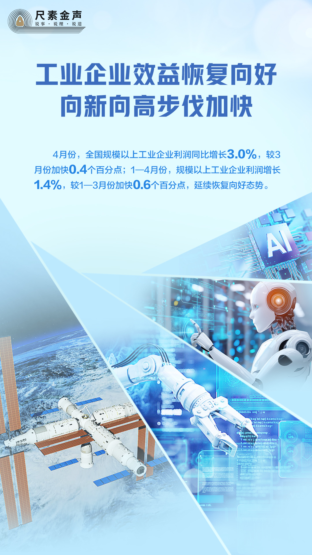 向“高”攀登不止步,1—4月份,我国制造业高端化深入推进,高技术制造业成为工业高质量发展的重要动力,高技术制造业利润同比增长9.0%,较1—3月份加快5.5个百分点,增速高于全部规模以上工业平均水平7.6个百分点。