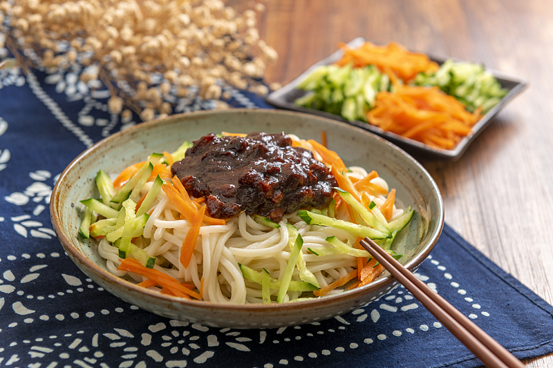 而北京一带人们爱吃炸酱面,先炸好酱,然后再把面条煮熟,用凉水过一下,再调上炸好的酱。有些人家还拌上些黄瓜丝、水萝卜丝、黄豆芽等,味道更佳。