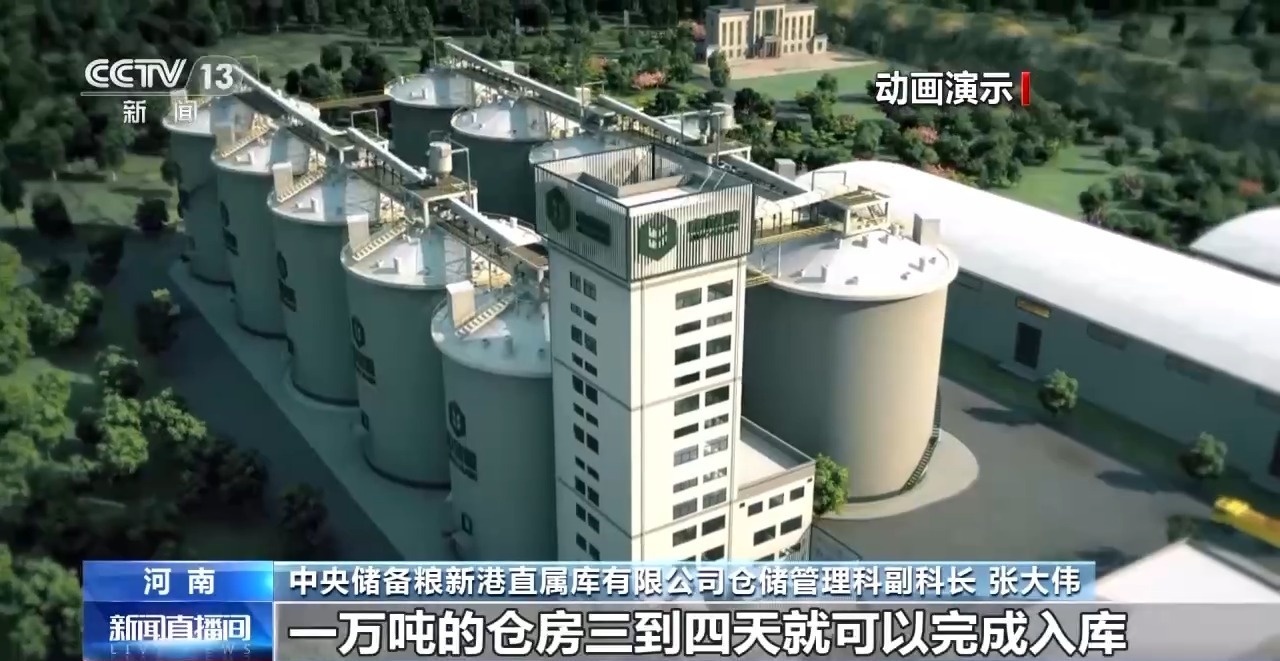 中央储备粮新港直属库有限公司仓储管理科副科长 张大伟:我们工作塔整个设计产能是二百吨每小时,一万吨的仓房三到四天就可以完成入库。
