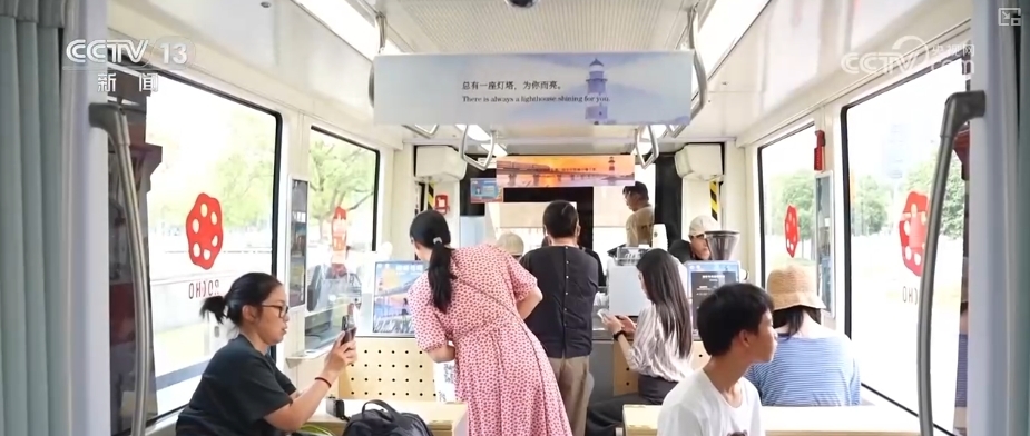 在江苏南京,一列设在有轨电车上的“流动咖啡馆”备受欢迎。咖啡电车的开行,不仅让乘客们解锁了全新的出行体验,也串联起城市消费圈。