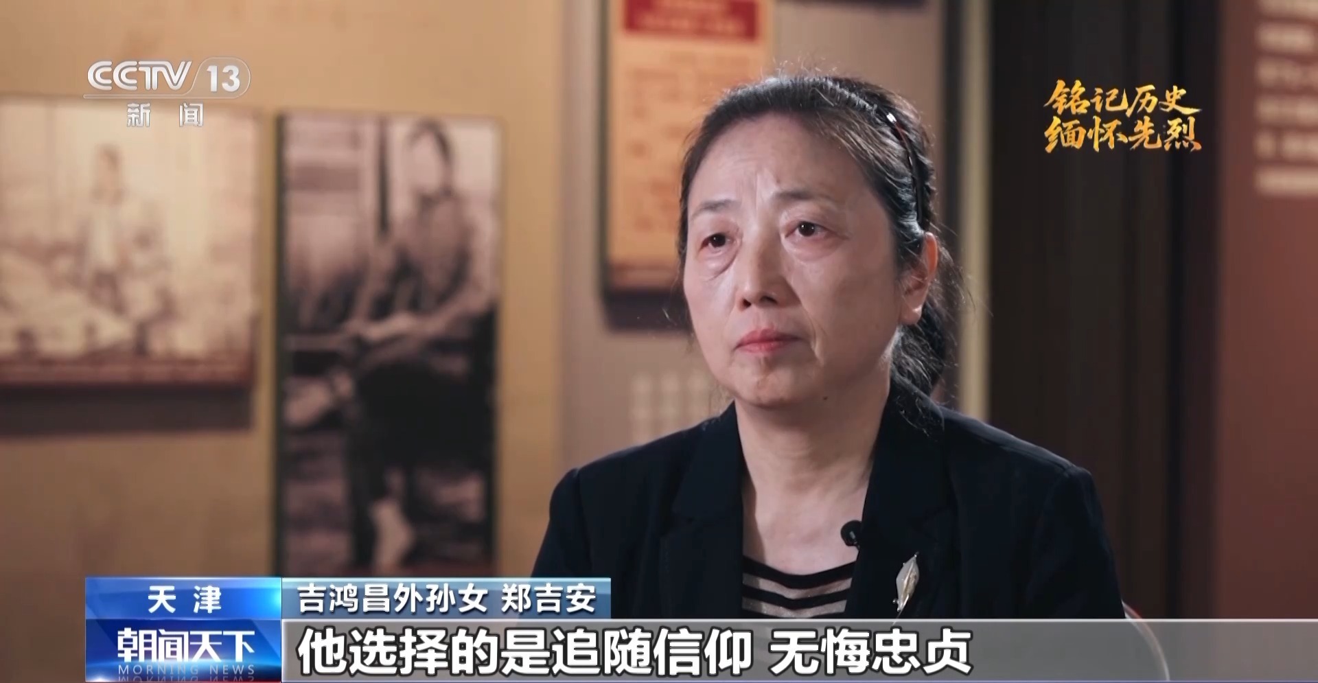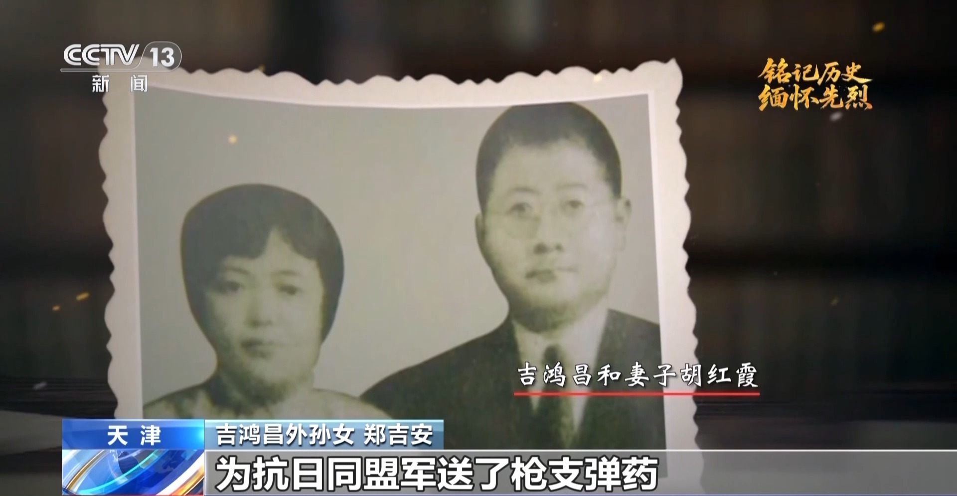 吉鸿昌外孙女 郑吉安:因为抗日同盟军是民众组织,没有枪支弹药。他不惜毁家纾难,让我的外祖母变卖家产,一次交党费6万大洋,为抗日同盟军送了枪支弹药,而且是由我外祖母冒着生命危险送到张家口前线的。