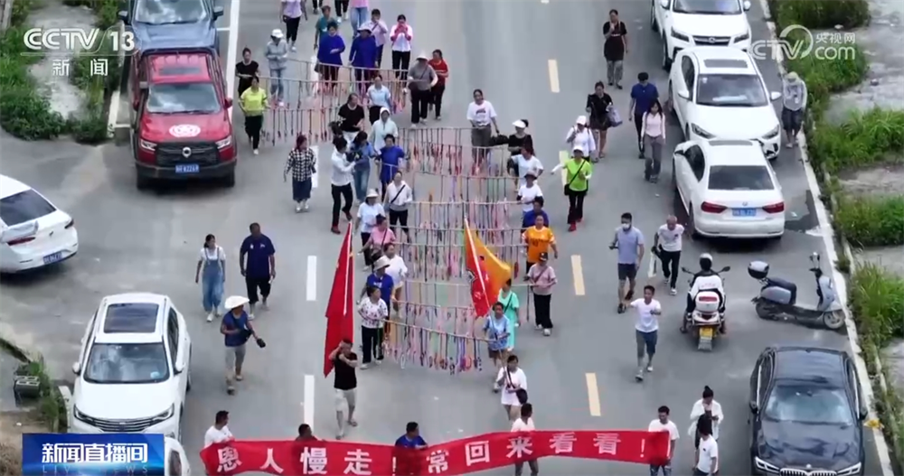 在送别的队伍中,不少人都满含泪水。面对灾难时,这些来自四面八方的救援人员冲进洪水中营救、踩着淤泥清理道路、冒着酷暑搬运垃圾,每一幕都深深烙印在榕江人的心中。