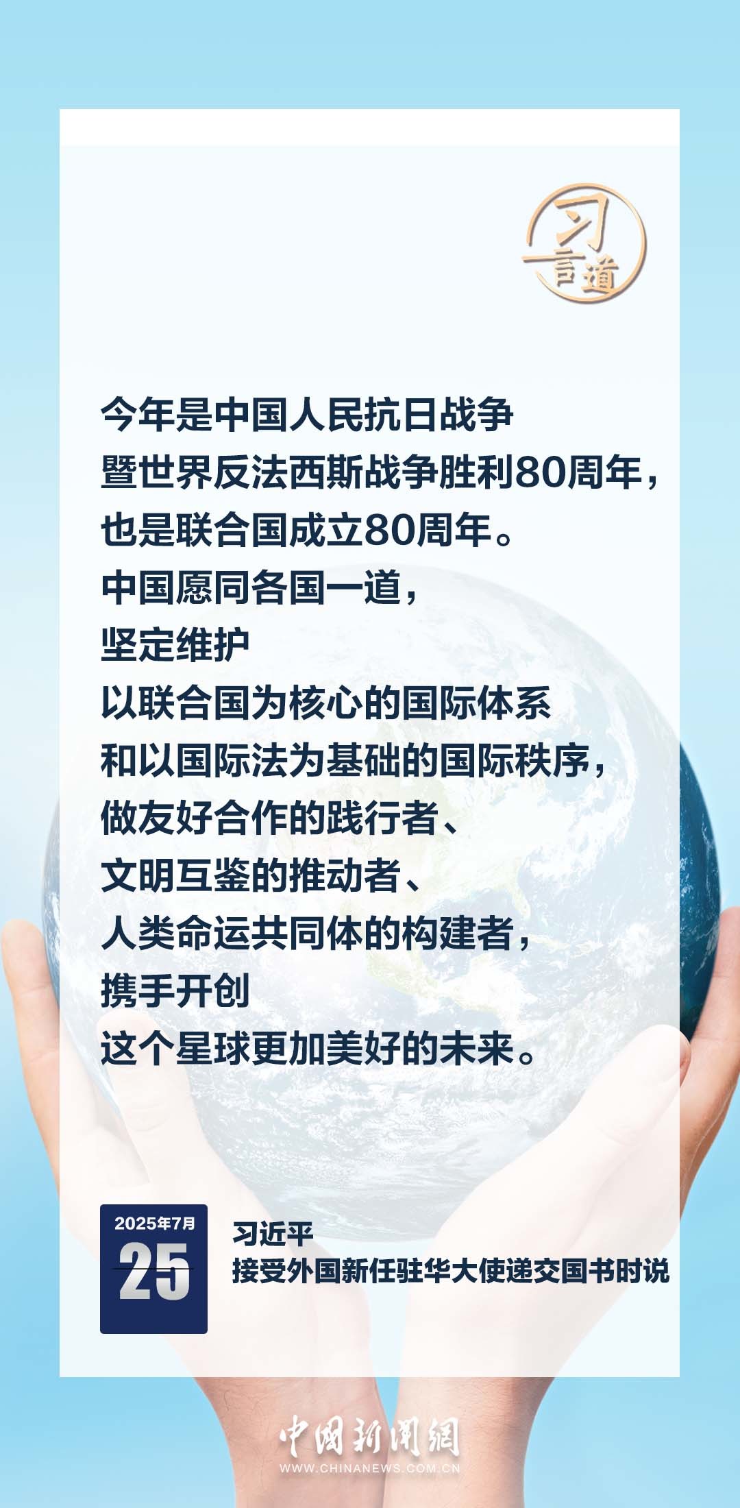 7月25日,国家主席习近平在北京人民大会堂接受16位驻华大使递交国书。仪式结束后,习近平在北京厅对使节们发表讲话。习近平指出——