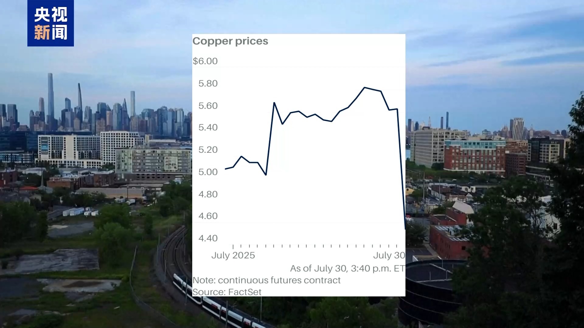 就在白宫消息公布后,7月30日,纽约商品交易所的铜期货价格一天内暴跌20%。此前,美国铜价一直高于伦敦金属交易所基准铜期货价格约28%。