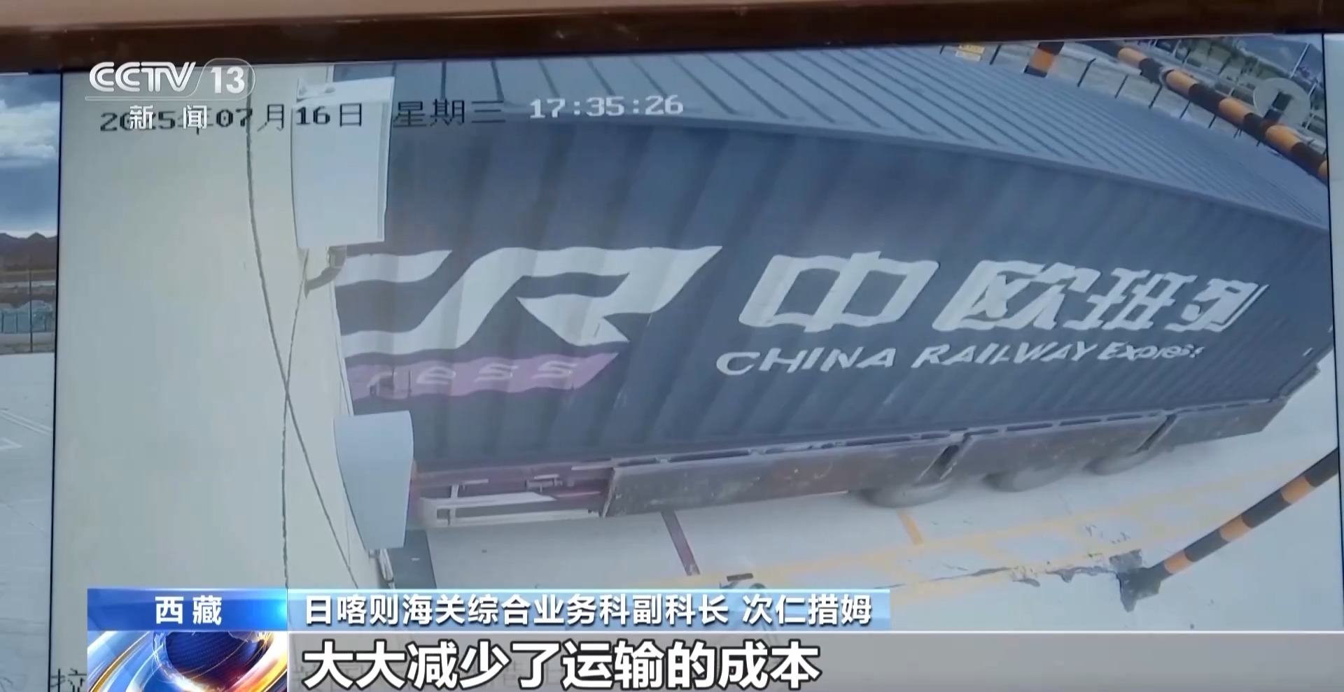 日喀则海关综合业务科副科长 次仁措姆:中印贸易以沿海海运为主,要45天的时间。但是通过陆运,从陆港申报,口岸直通一箱到底的操作模式只需要15天,大大减少了运输的成本。