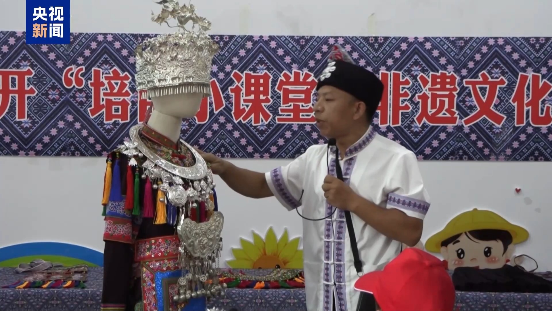 暑假期间,湖南怀化市通道侗族自治县通过开设公益课堂,将本地非遗项目带到孩子们身边。在公益课上侗族服饰传承人向学生们系统介绍了侗族服饰文化,阐释不同纹样图案的象征意义。学生们不仅直观感受到侗族精湛的纺织工艺,更深刻理解了服饰中蕴含的民族文化。