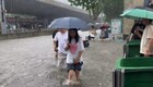 8月7日,河南省郑州市气象台13时20分发布中原区暴雨红色预警信号:受强对流云团缓慢少动影响,郑州中原区局部已出现100毫米以上的强降水,预计未来3小时内,中原区所辖乡镇及街道大部分地区降水持续,并伴有短时强降水、雷暴大风等强对流天气,局部可达150毫米。图为行人步行通过中原区建设路积水路段。赵梦阳 摄