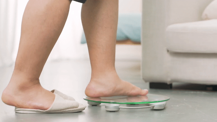 低头瞄向体脂秤上的数字