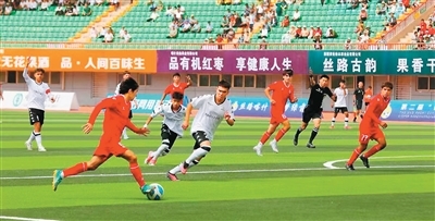 当喀什球员踢出“世界波”,远道而来的山东球迷热情喝彩;北京国安战胜吉尔吉斯斯坦队后,喀什四中的孩子们冲上赛场围拢在球员身边抢着合影。